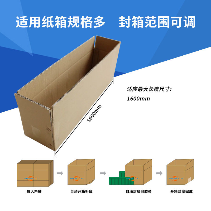 非标定制长形箱自动开箱封底机 苏州肖卡特工厂1600mm纸箱开箱机由