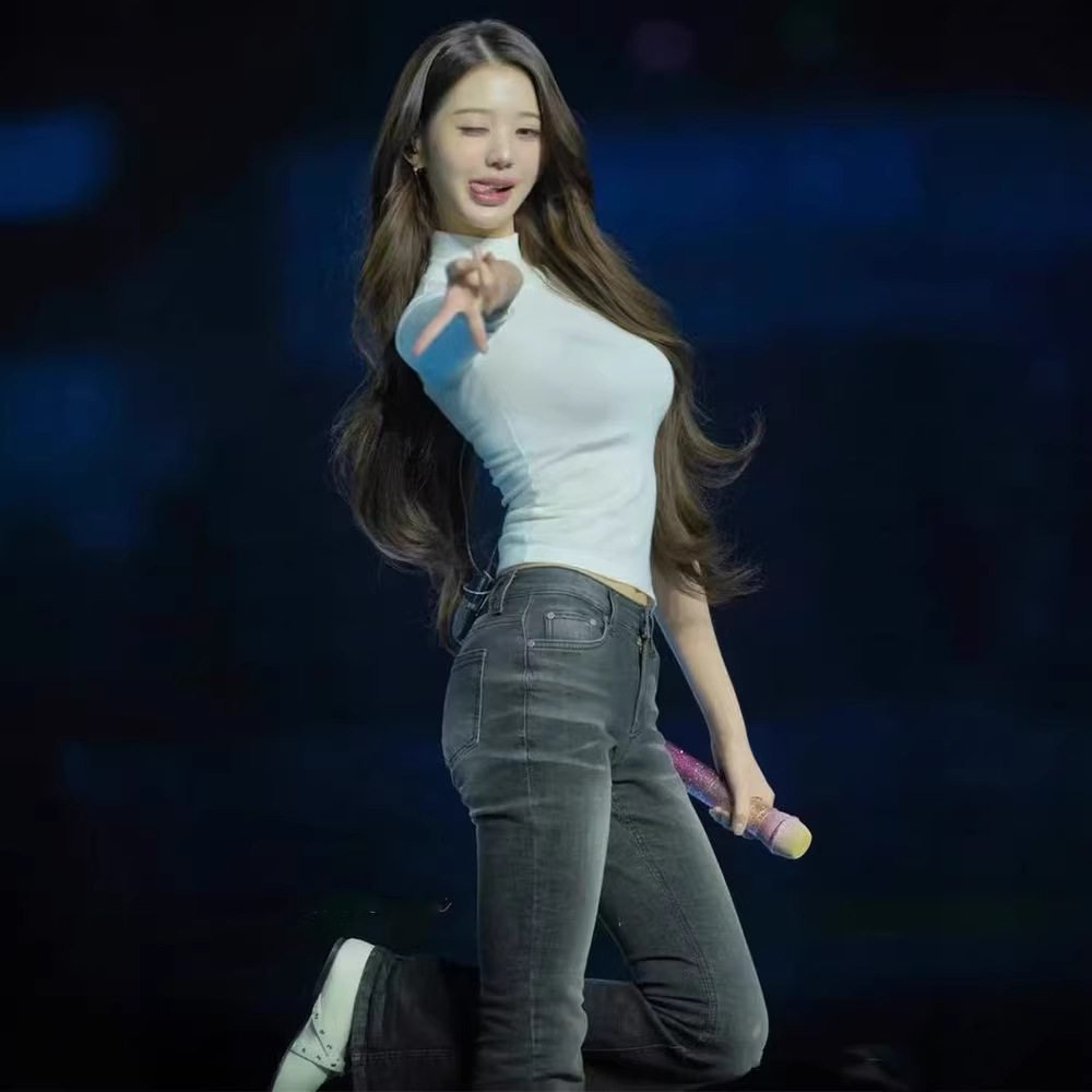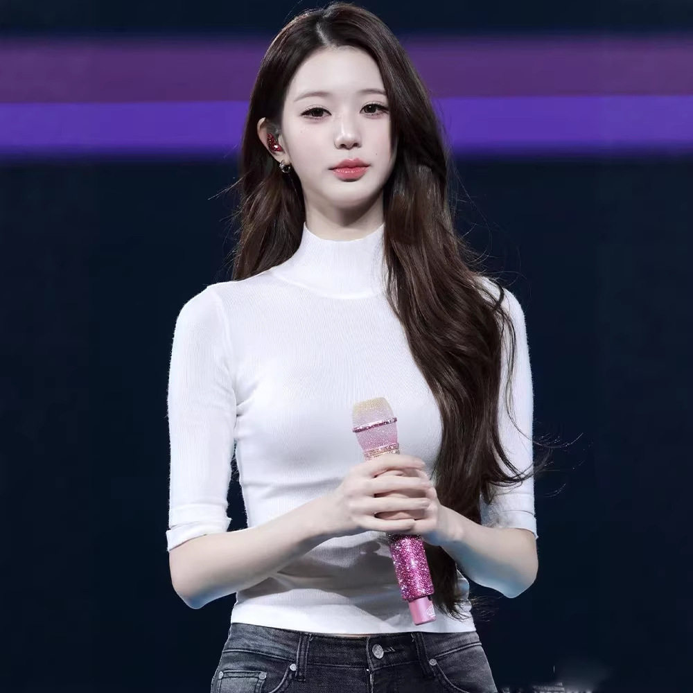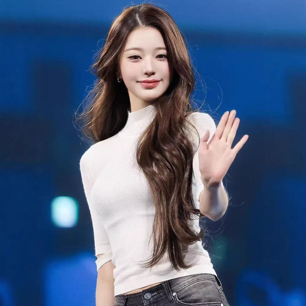 上衣百搭腿喇叭牛仔裤 现货张元 女 修身 短款 英同款 白色半高领针织衫