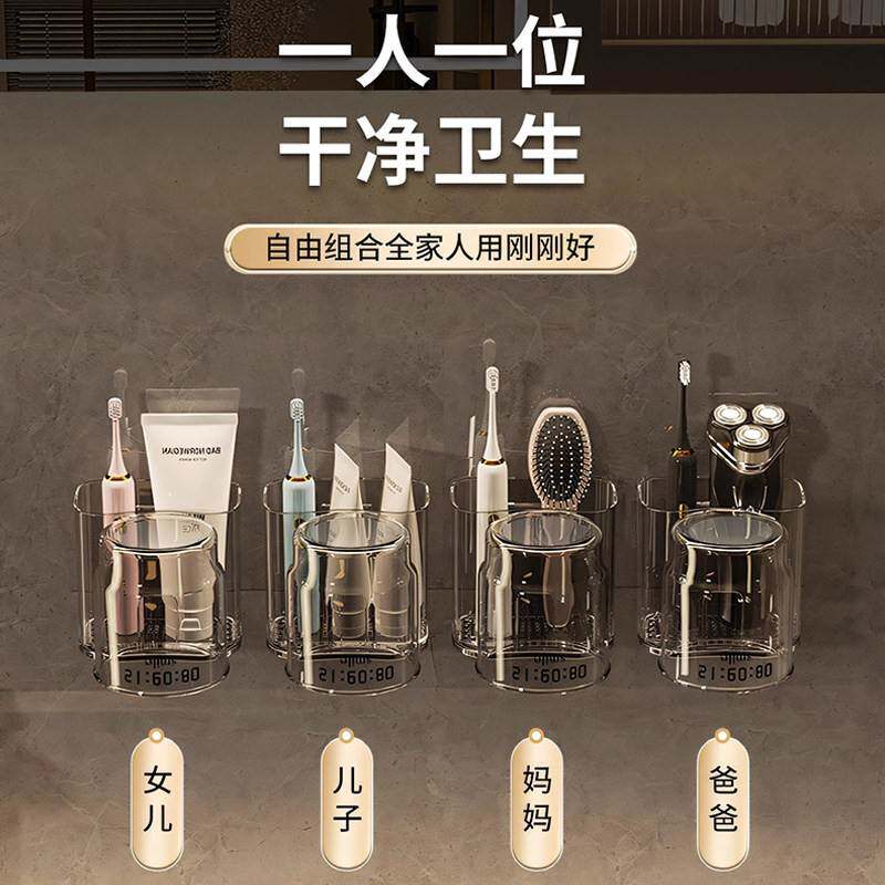 2026年新款 漱口杯情侣牙杯 放牙刷牙膏置物架排行榜免打孔架壁挂式