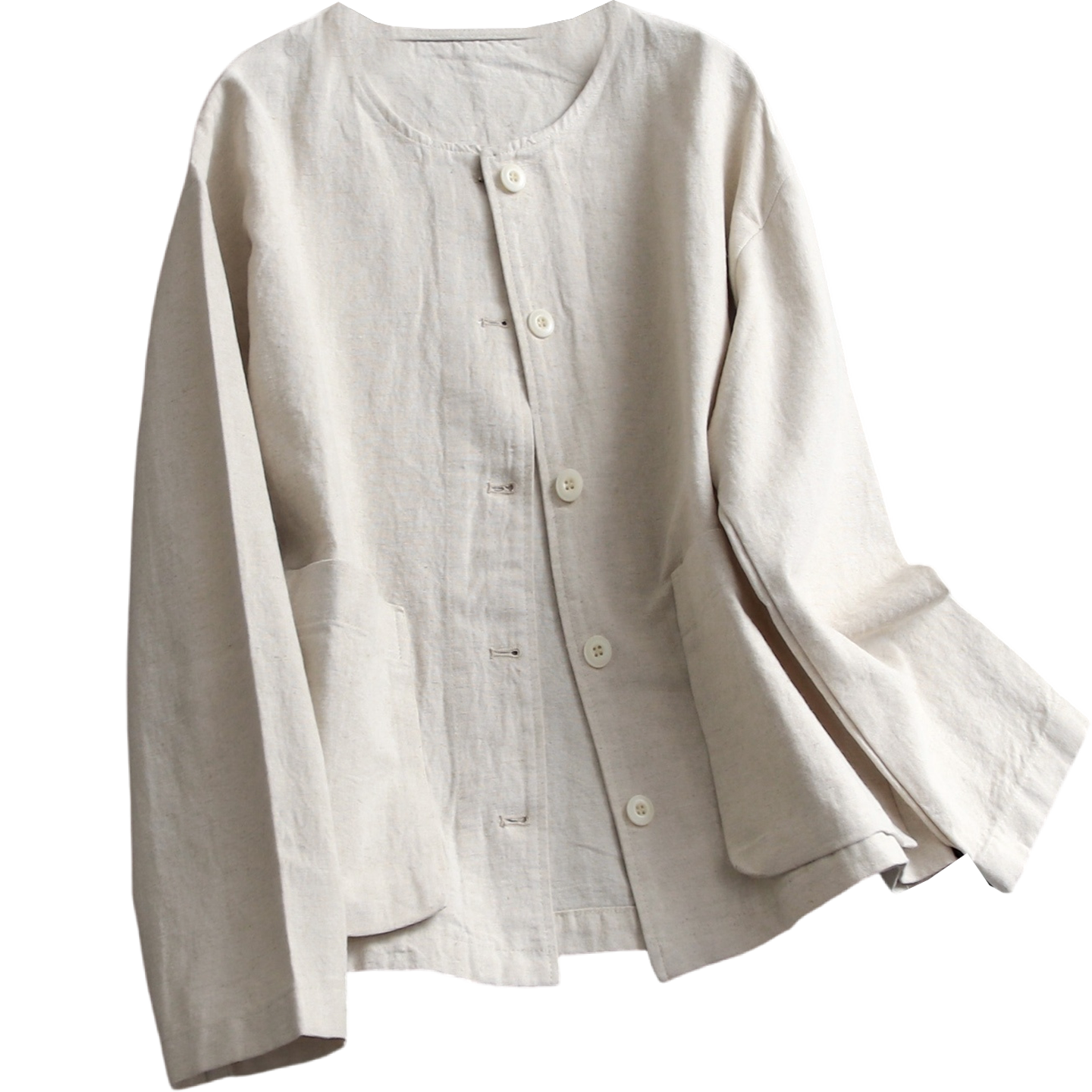简约纯色棉麻混纺宽松廓形圆领2025秋季 长袖 休闲女装 外套V437 新款