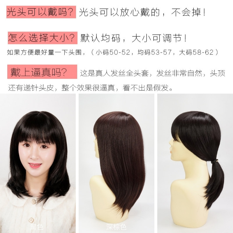 为您提供商品假发女长发逼真自然中年妈妈中长直发全头套光头真发全真人发可扎的详细介绍,