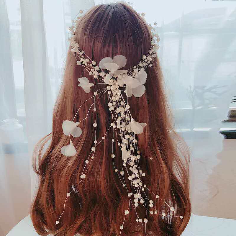 超仙甜美手工珍珠头花耳环套装 结婚纱礼服造型配饰 韩式 新娘头饰