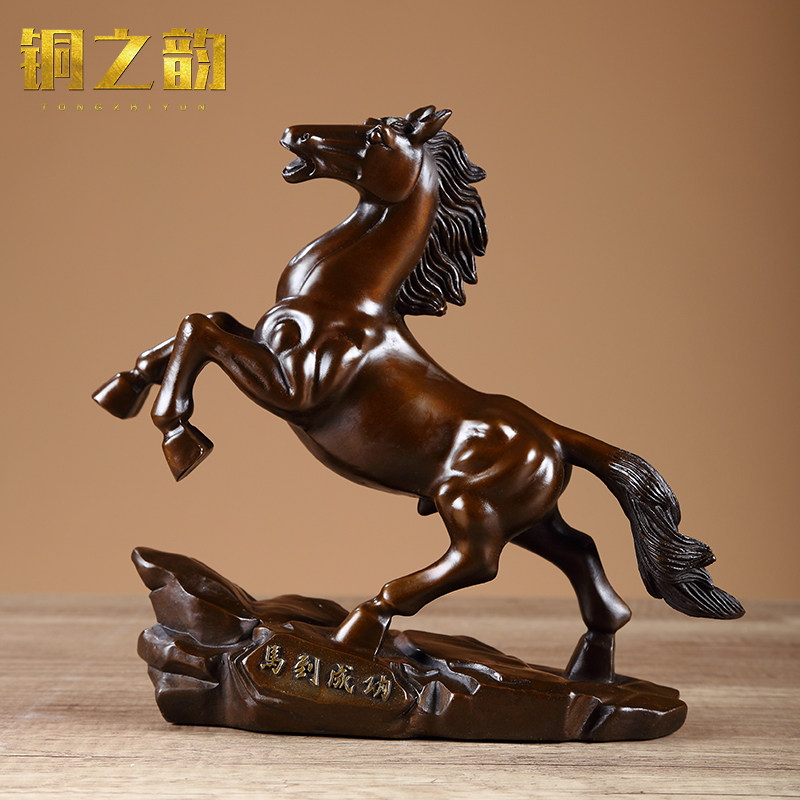 饰 纯铜马到成功店铺开业p铜马招财摆件柜台博古架家居客厅工艺装由