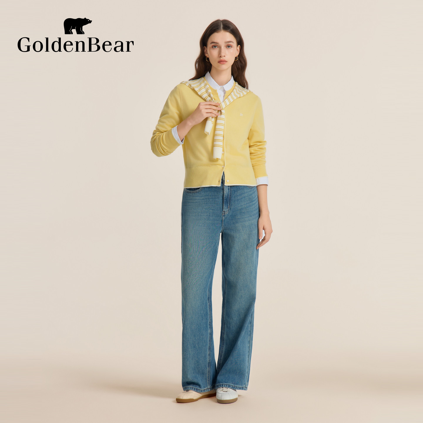 春季 女士含绵羊毛带披肩针织衫 金熊 BEAR 含绵羊毛 GOLDEN由