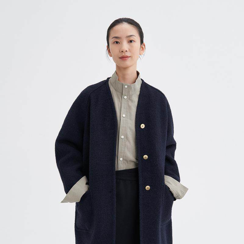 冬女士经典 粗花呢蓝布舒适阔系大衣 klee 素然由