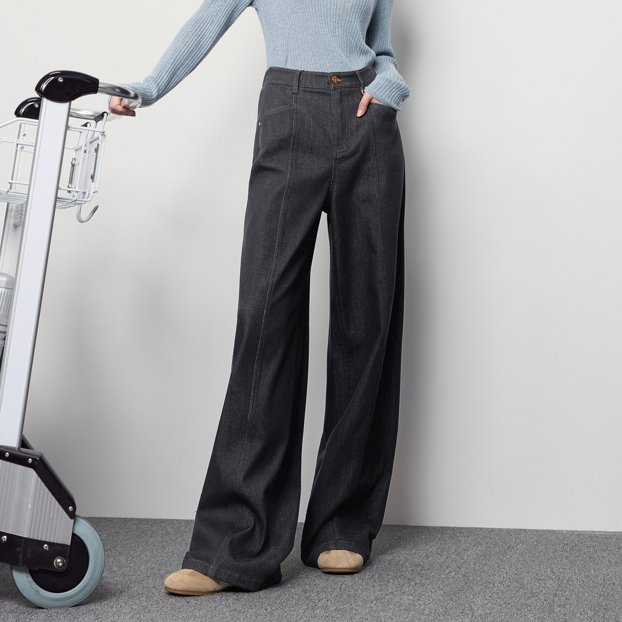 CADIDL卡迪黛尔 通勤简约时尚 直筒牛仔裤 女冬天穿搭 商场同款