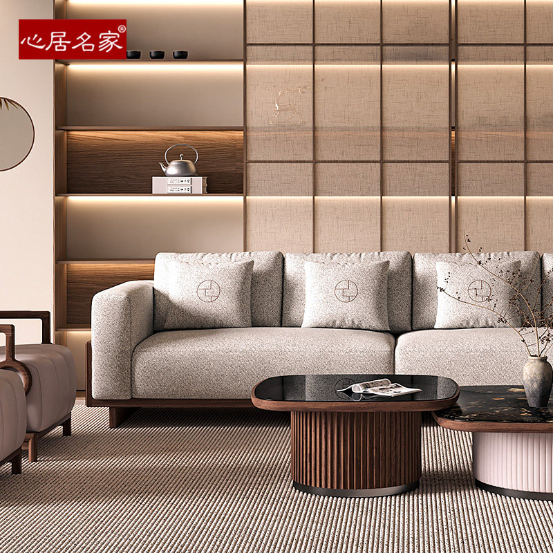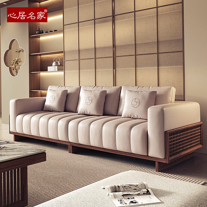 宋式 客厅北美黑胡桃木头层真皮 美学实木沙发直排组合布艺禅意中式由