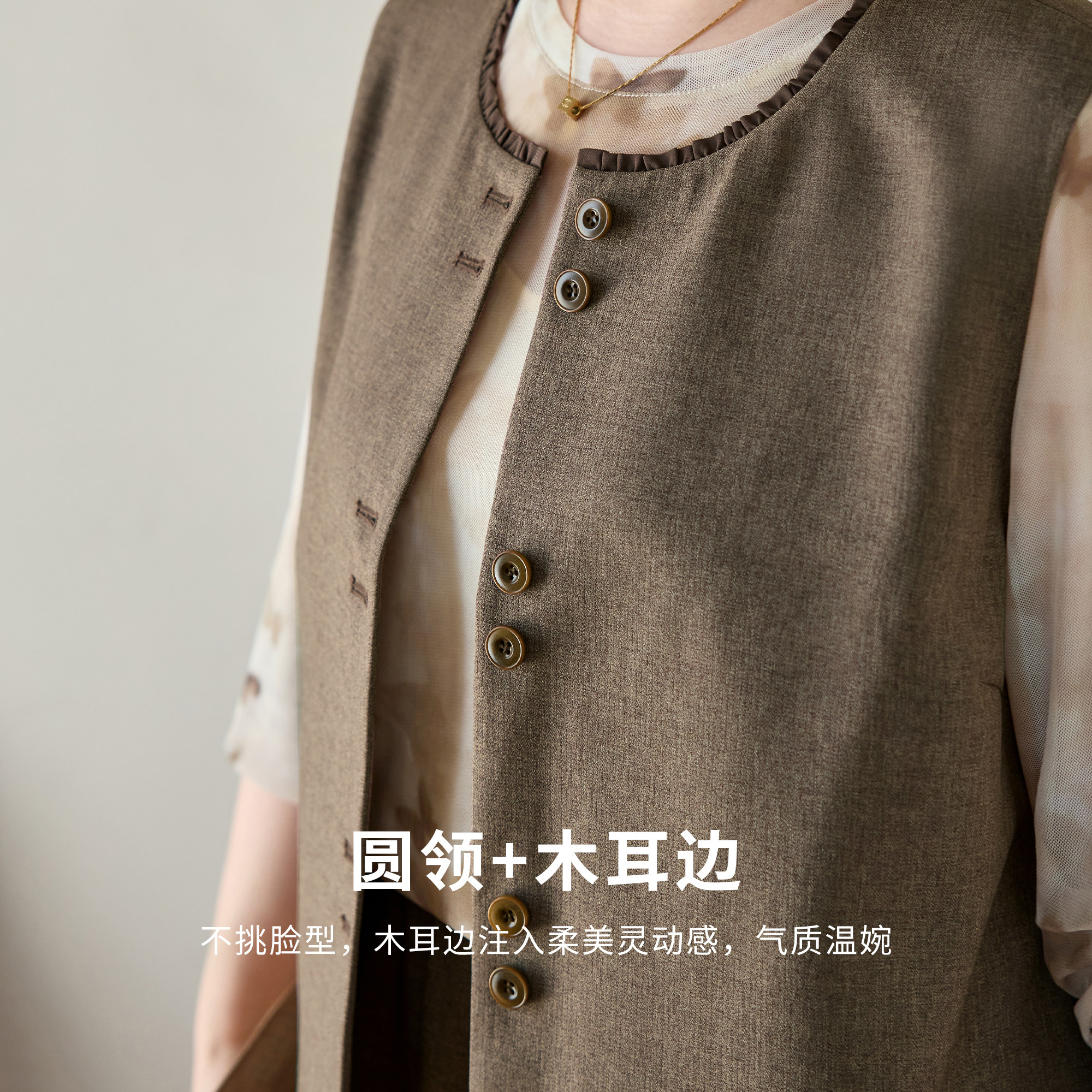 立领坎肩上衣唐装 马夹背心女外搭秋 国风马甲高级感宋锦无袖 新中式
