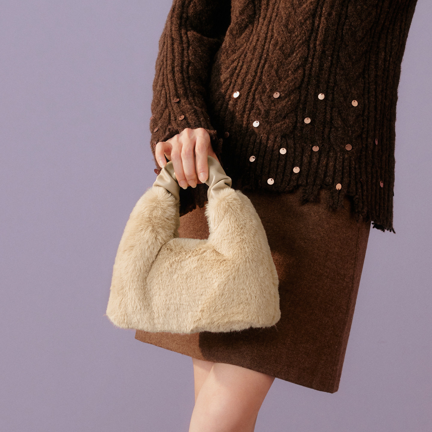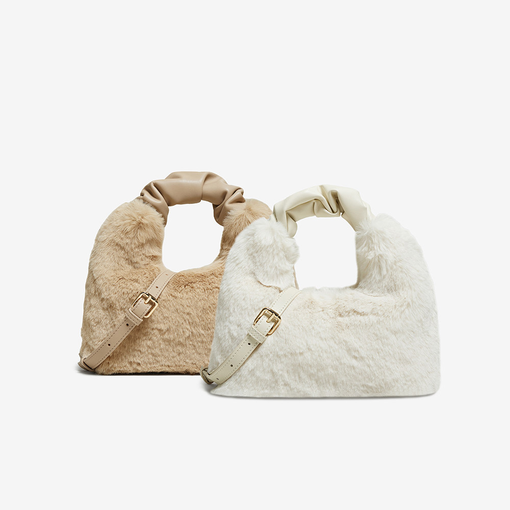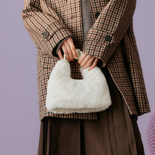高级感毛绒手提包时尚 可爱毛毛包女JA176DX5 商场新款 百思图冬季