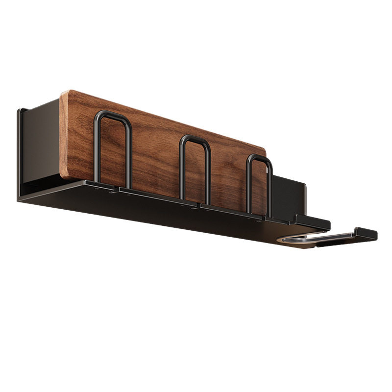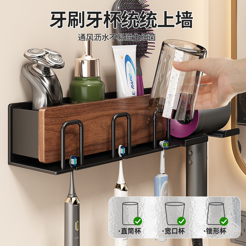 胡桃木牙刷置物架卫生间免打孔壁挂电动牙杯漱口杯吹风机一体