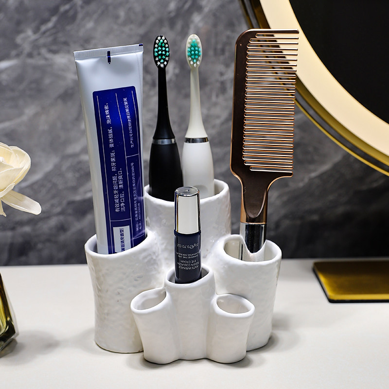 为您提供商品潮流大容量陶瓷珊瑚牙刷牙膏收纳筒家用洗漱台手电动牙刷底座支架的详细介绍,