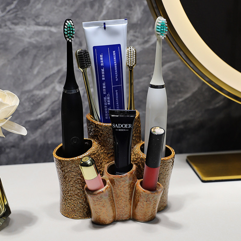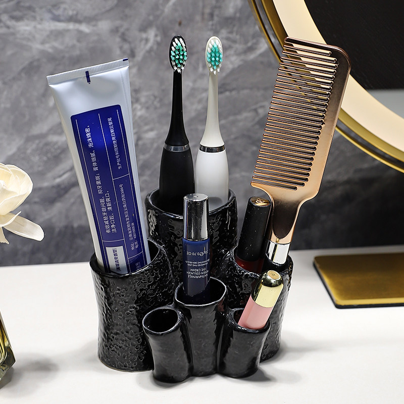 潮流大容量陶瓷珊瑚牙刷牙膏收纳筒家用洗漱台手电动牙刷底座支架由