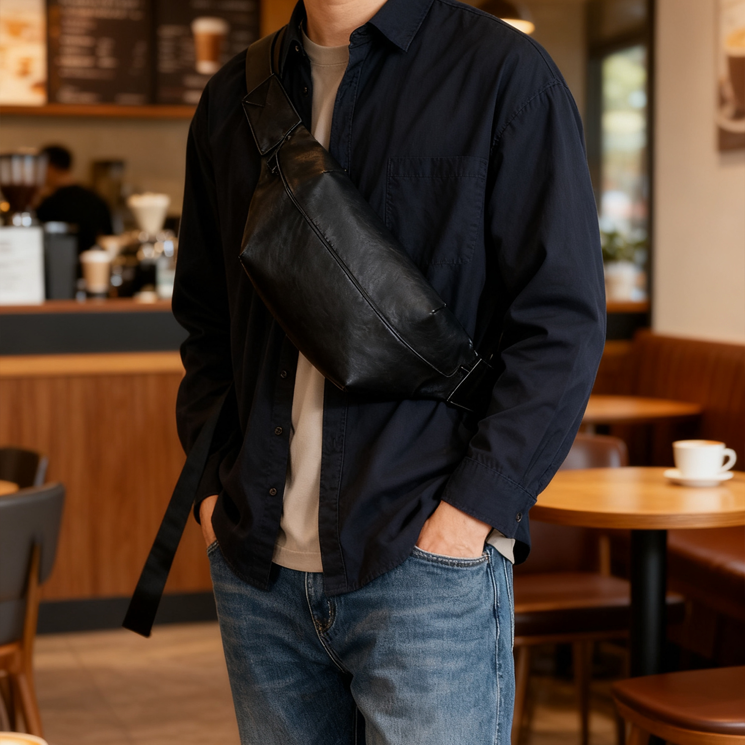 鹿师傅牛皮男士 高级感男款 斜挎包单肩挎包男士 包 胸包真皮2026新款由