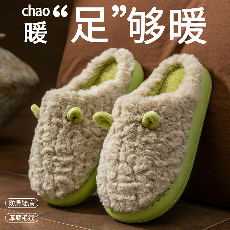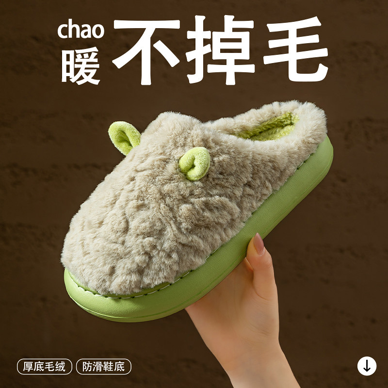 2025新款 室内家居防滑不臭脚保暖厚底毛毛棉拖外穿 女士冬季 棉拖鞋由