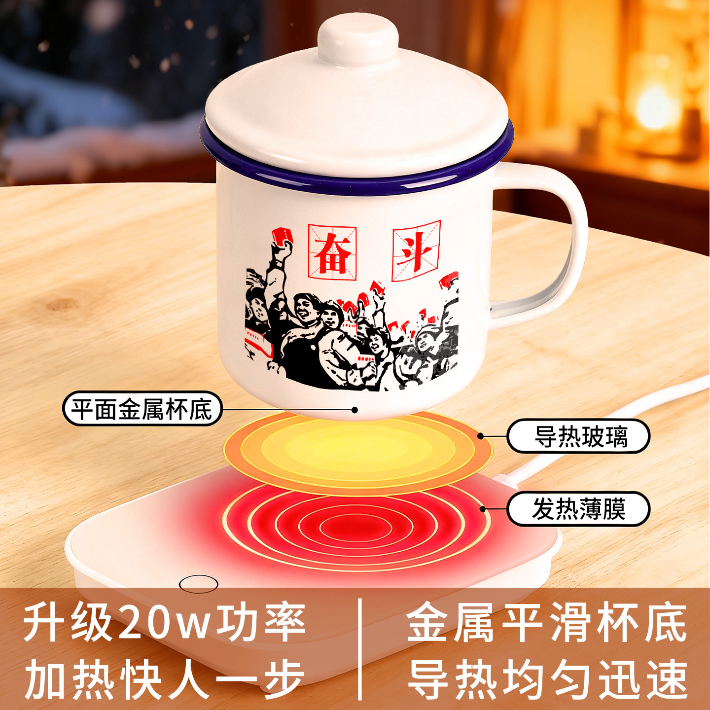 搪瓷茶缸子家用办公室带盖马克杯定制 55度恒温杯加热水杯怀旧老式