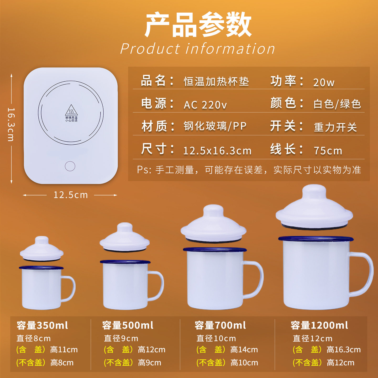 为您提供商品搪瓷茶缸子家用办公室带盖马克杯定制 55度恒温杯加热水杯怀旧老式的详细介绍,
