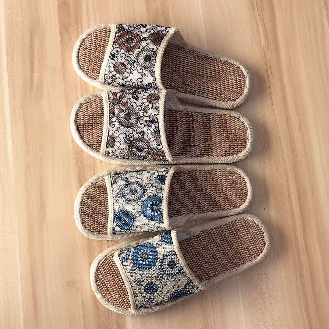 夏季 2025日式 复古亚麻特价 拖鞋 室内居家透气静音防滑 情侣家居新款