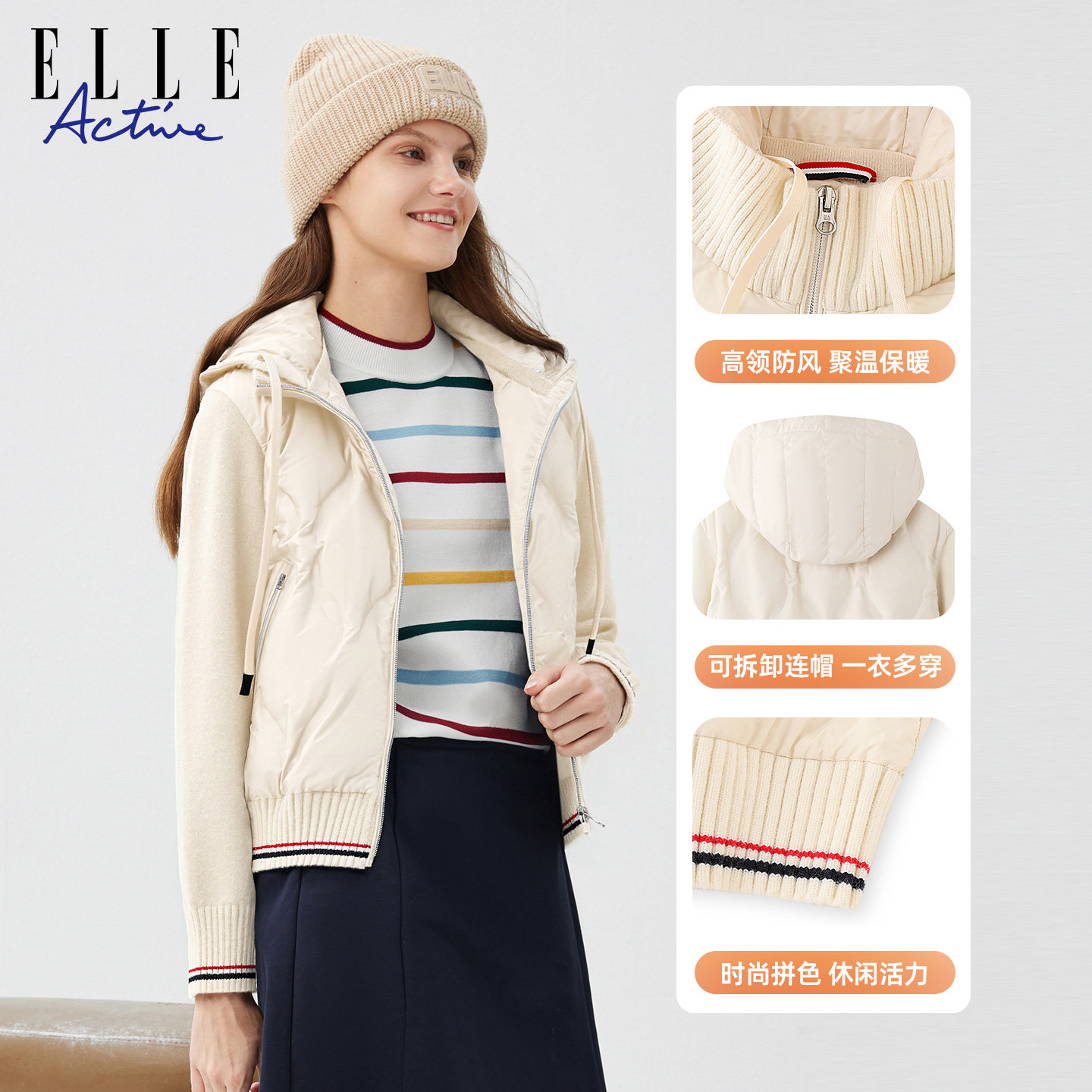 为您提供商品ELLE 防风保暖外套显瘦上衣 Active时髦可拆卸连帽羽绒服女秋冬款的详细介绍,