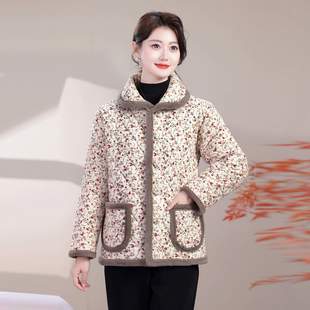 秋冬新款 加绒加厚碎花棉衣妈妈装 保暖棉袄外穿外套大码 中老年女装由