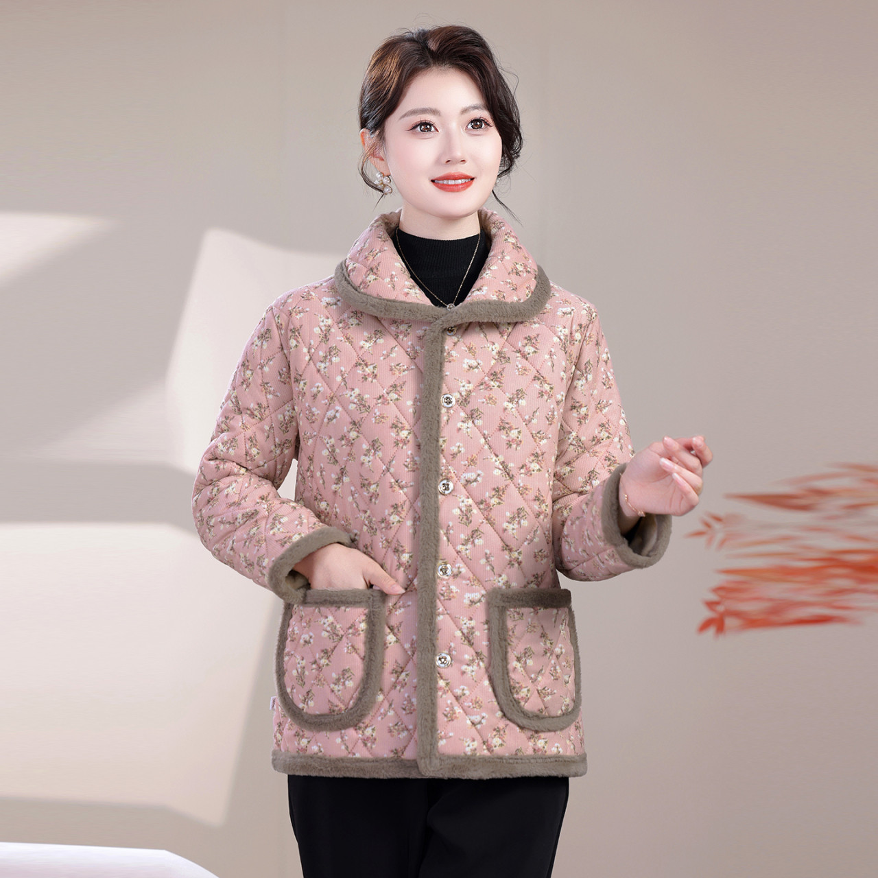 秋冬新款 加绒加厚碎花棉衣妈妈装 保暖棉袄外穿外套大码 中老年女装