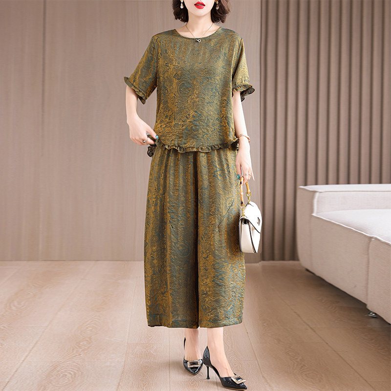 2025夏季 两件套优雅气质妈妈宽松显廋真丝上衣裤 子香云纱套装 新款由