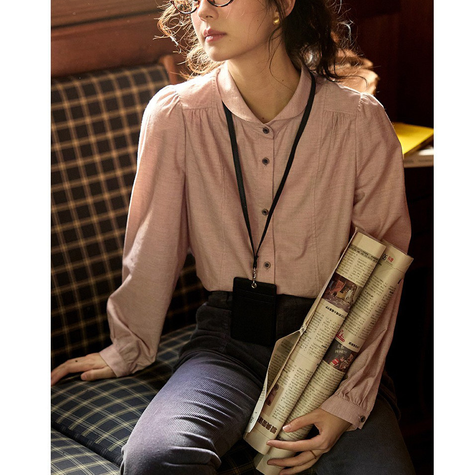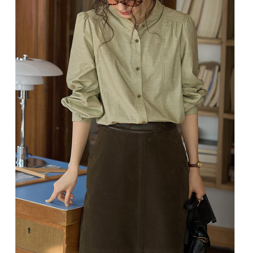 衬衫 复古翻领泡泡袖 法式 衬衣上衣 2025新款 长袖 女秋季 solighter