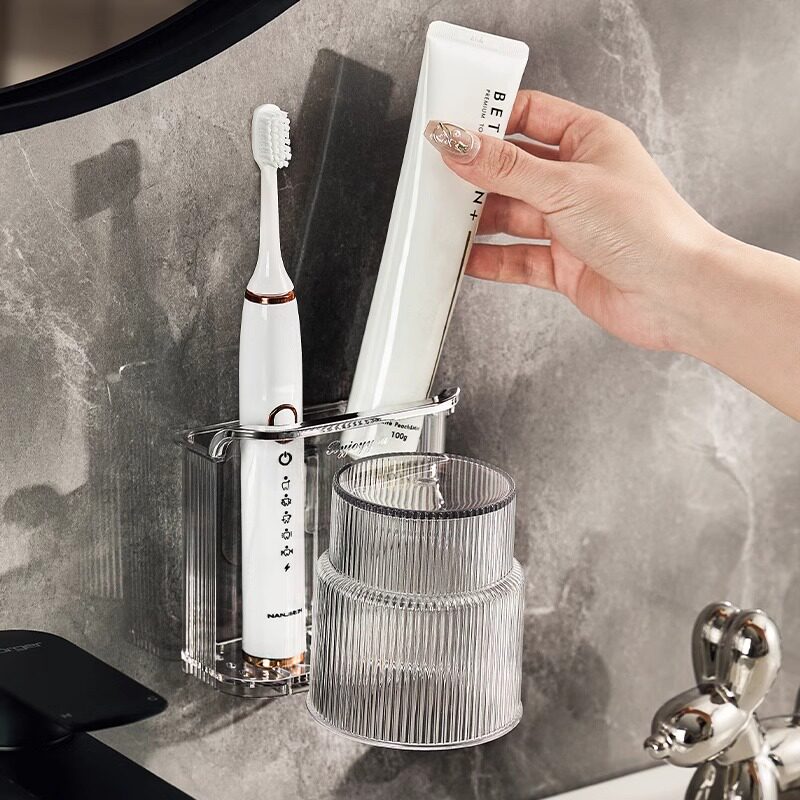 免打孔卫生间牙具座牙膏收纳浴室 牙刷牙杯壁挂置物架电动牙刷套装