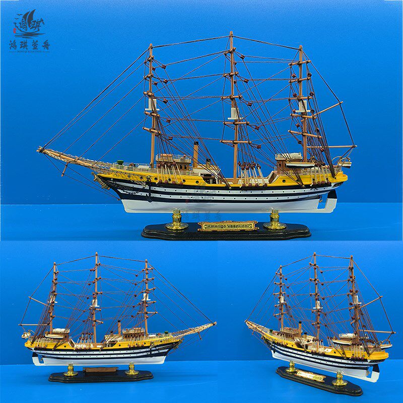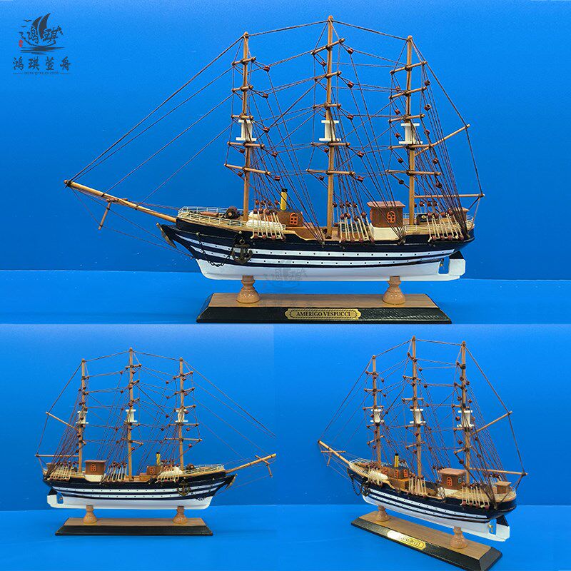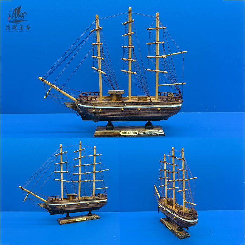饰摆设 木质帆船模型小摆件手工艺木船小船 创意家居装 地中海风格