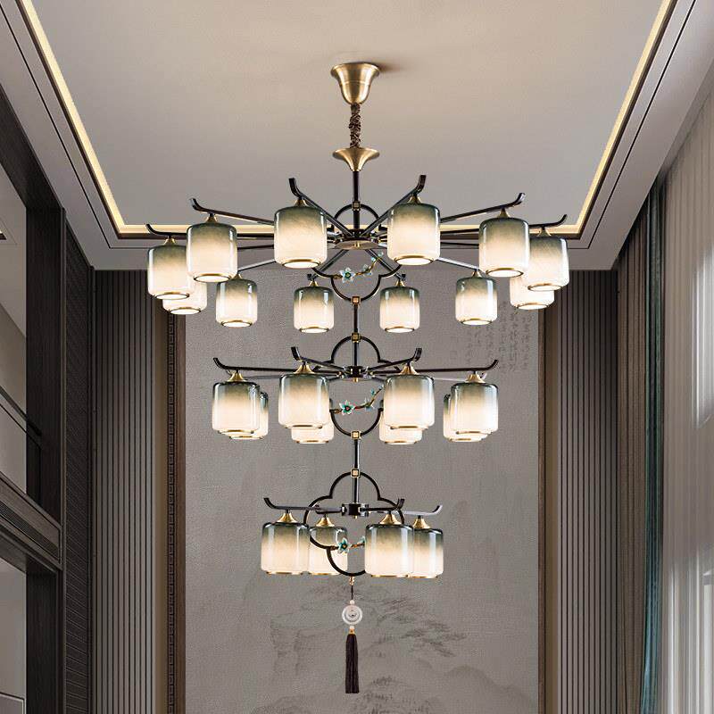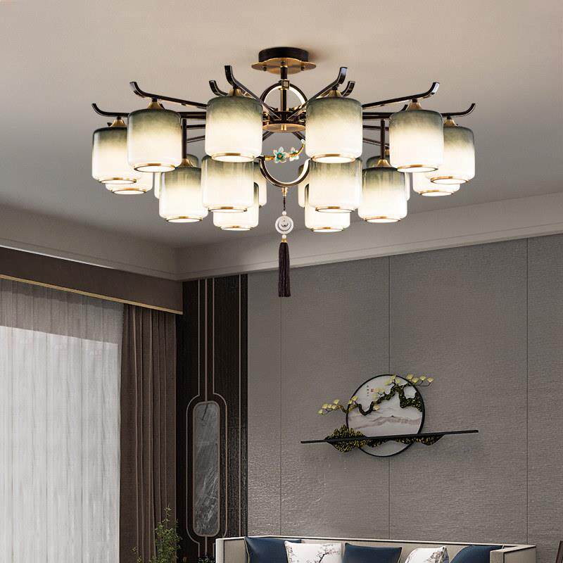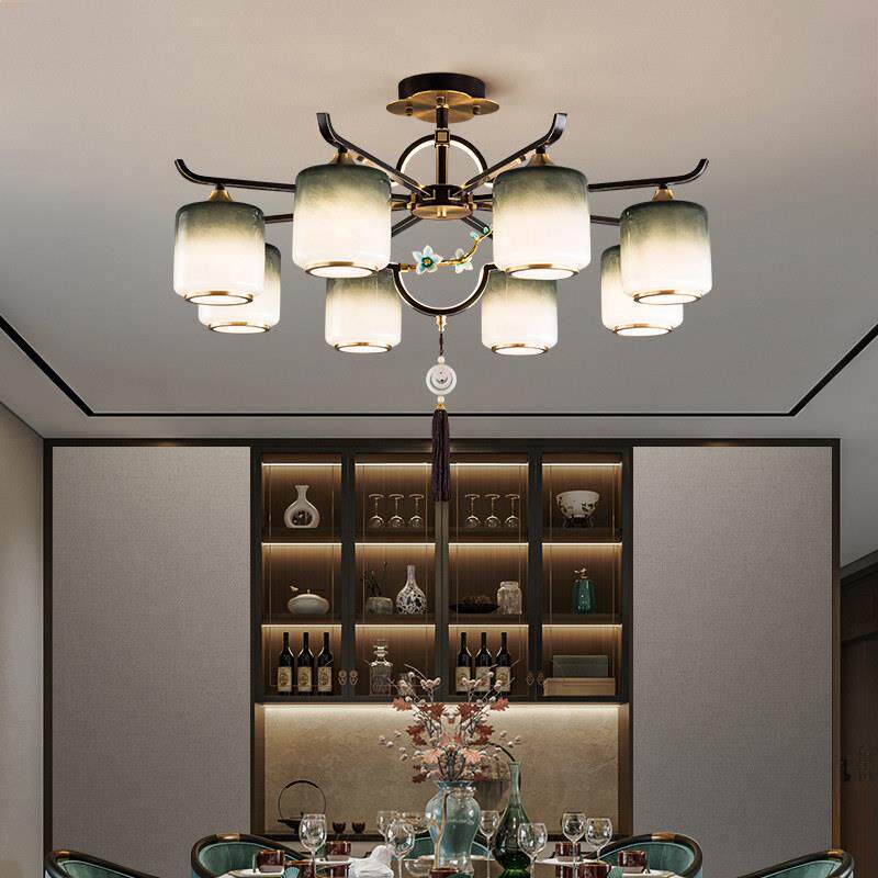 中国风别墅覆式 楼饭厅卧室灯 全铜吊灯客厅客厅灯2025年新款 新中式