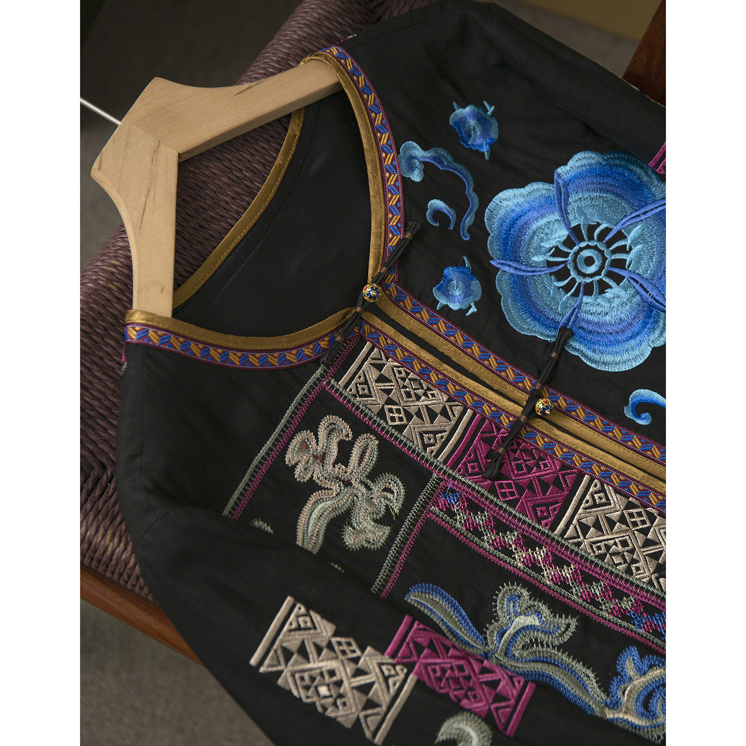 为您提供商品丝艺100%桑蚕丝新中式 上衣 重工刺绣香云纱真丝外套女圆领国风开衫的详细介绍,