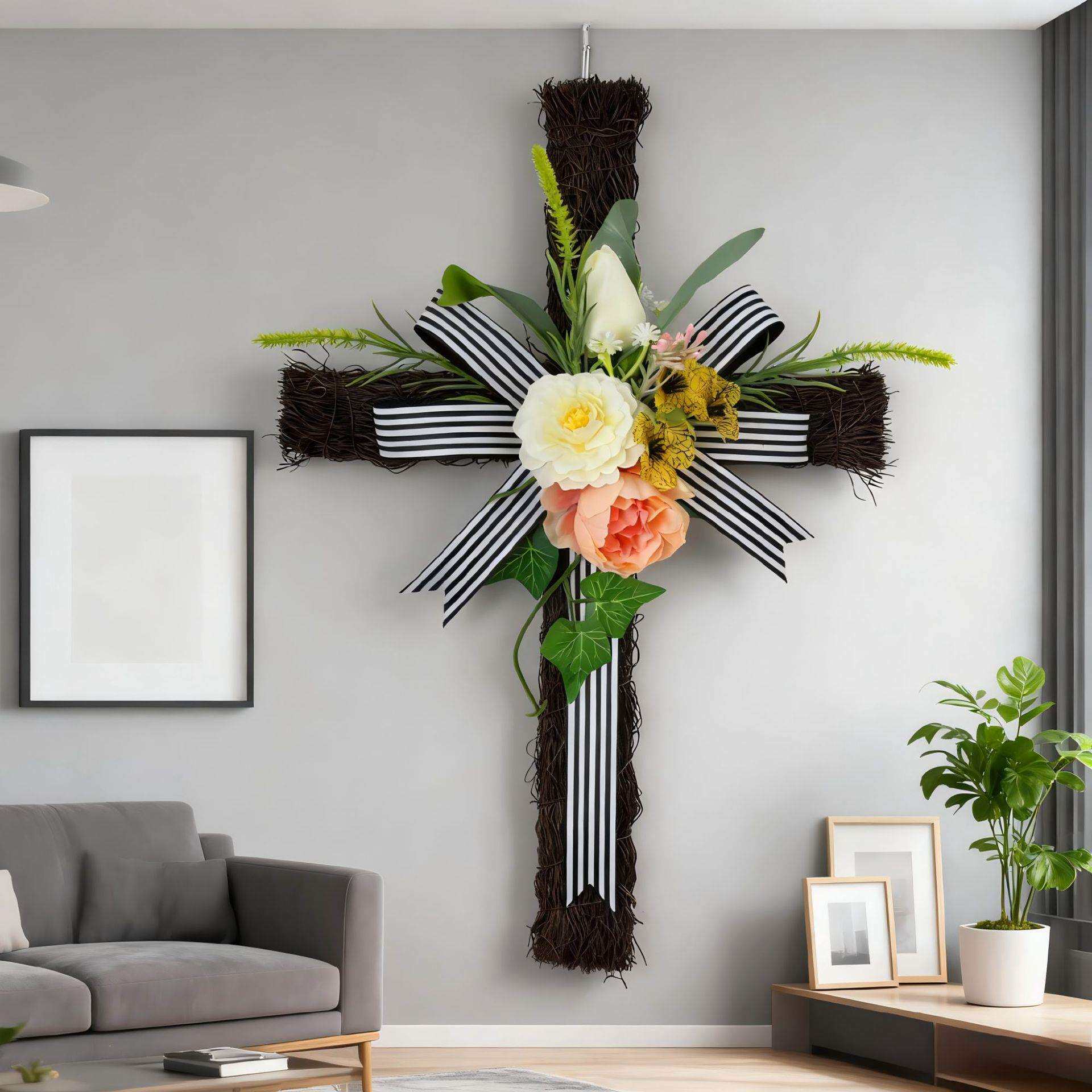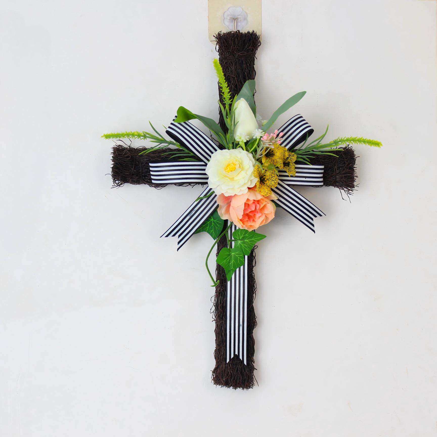 亚马逊春季 饰 牡丹花环圣诞十字形花环复活节花环门挂家居悬挂装