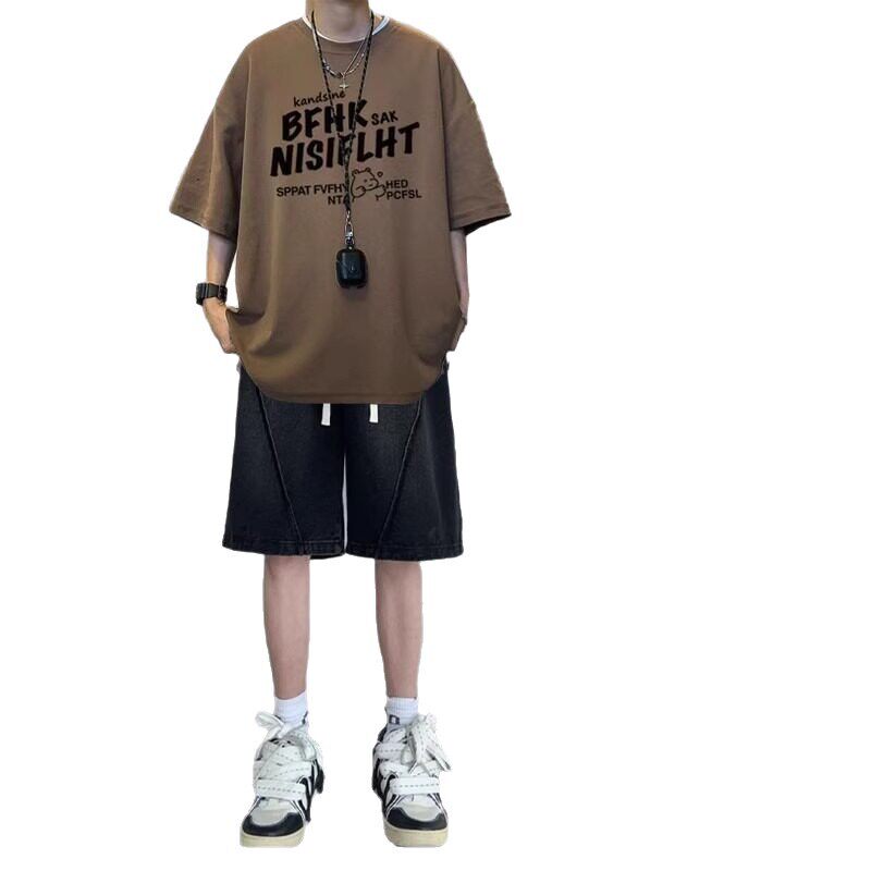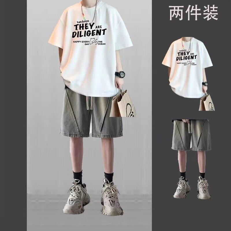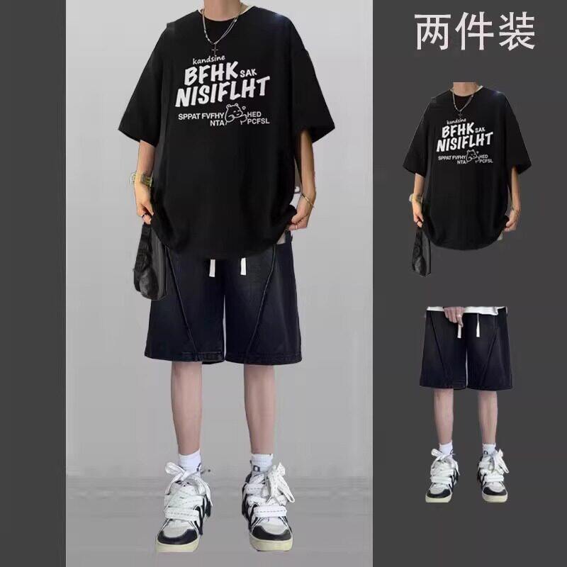 libetter夏季 t恤男套装 休闲帅气男装 一套搭配牛仔 潮牌痞帅短袖