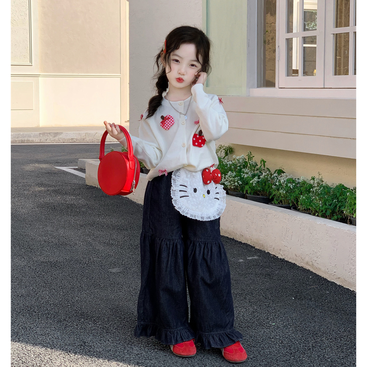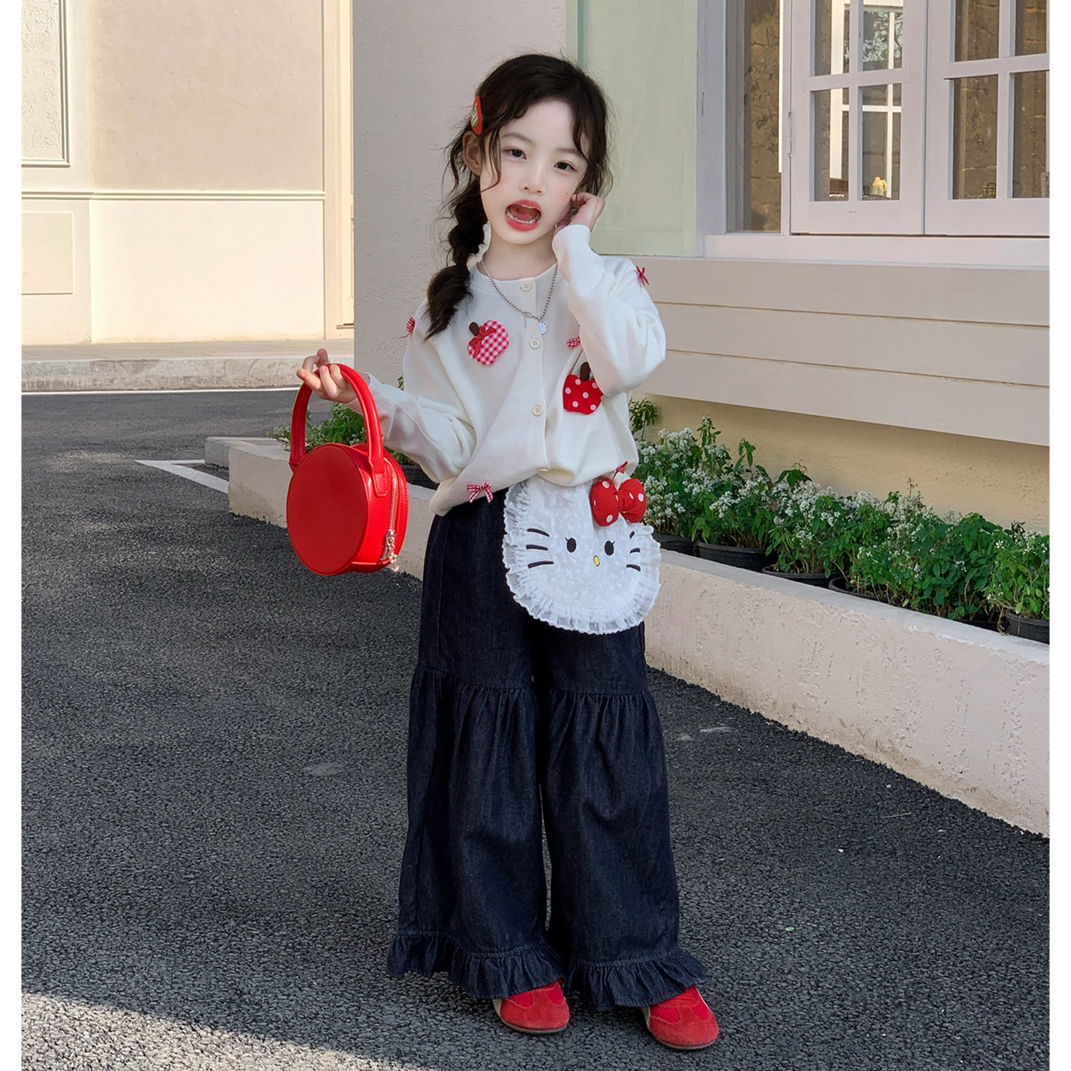 为您提供商品洋气时髦小猫薄款 女童春季 甜美风针织开衫 套装 两件套 防晒衣牛仔裤的详细介绍,
