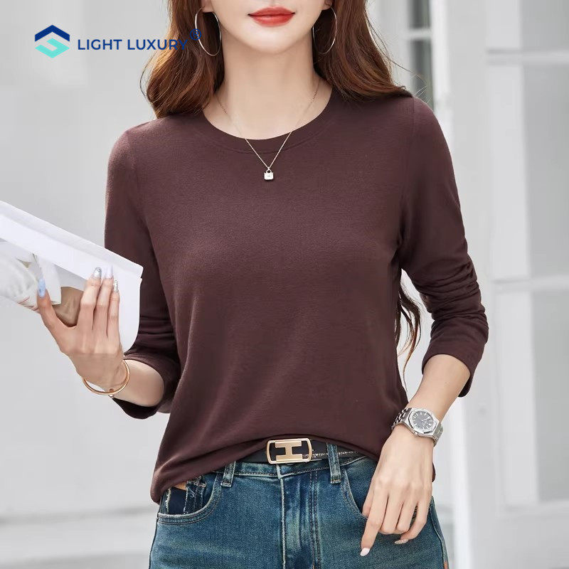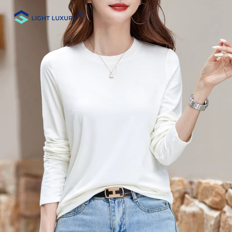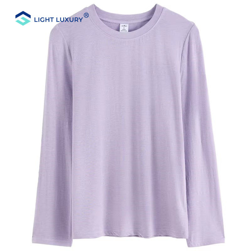 内搭打底衫 外穿正肩紫色高级上衣 面膜t恤女宽松垂感透气薄款 长袖
