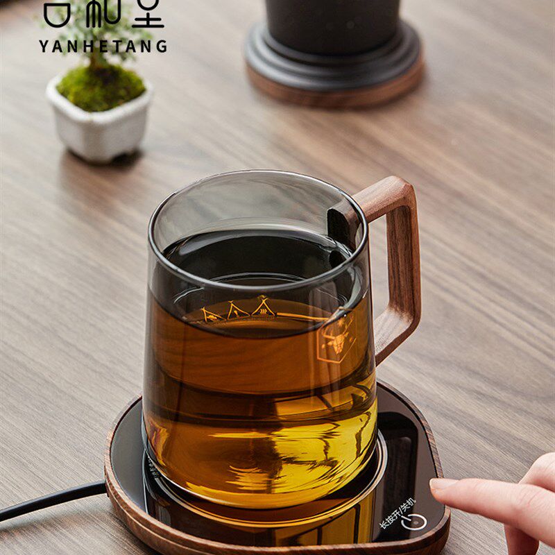玻璃杯过滤茶杯茶水分离55度恒温杯垫保温水杯加热器办公室泡茶杯