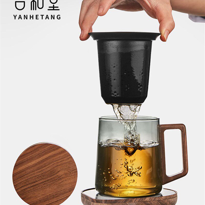 泡茶专用水杯大容量高硼硅茶水分离杯带盖杯子 希乐玻璃杯茶杯男士