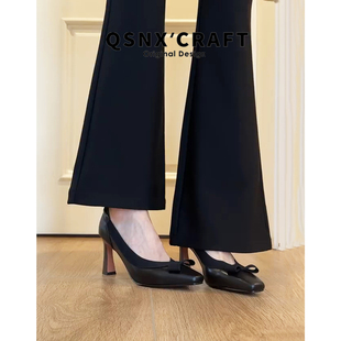 女2026春蝴蝶结方头细跟高跟鞋 羊皮版 法式 复古单鞋 子 不累脚单鞋由
