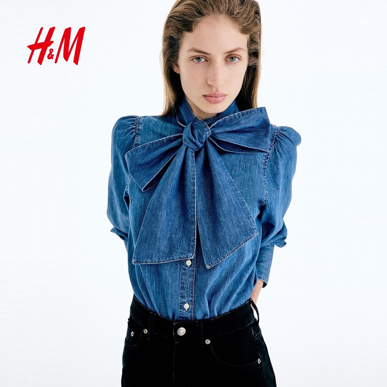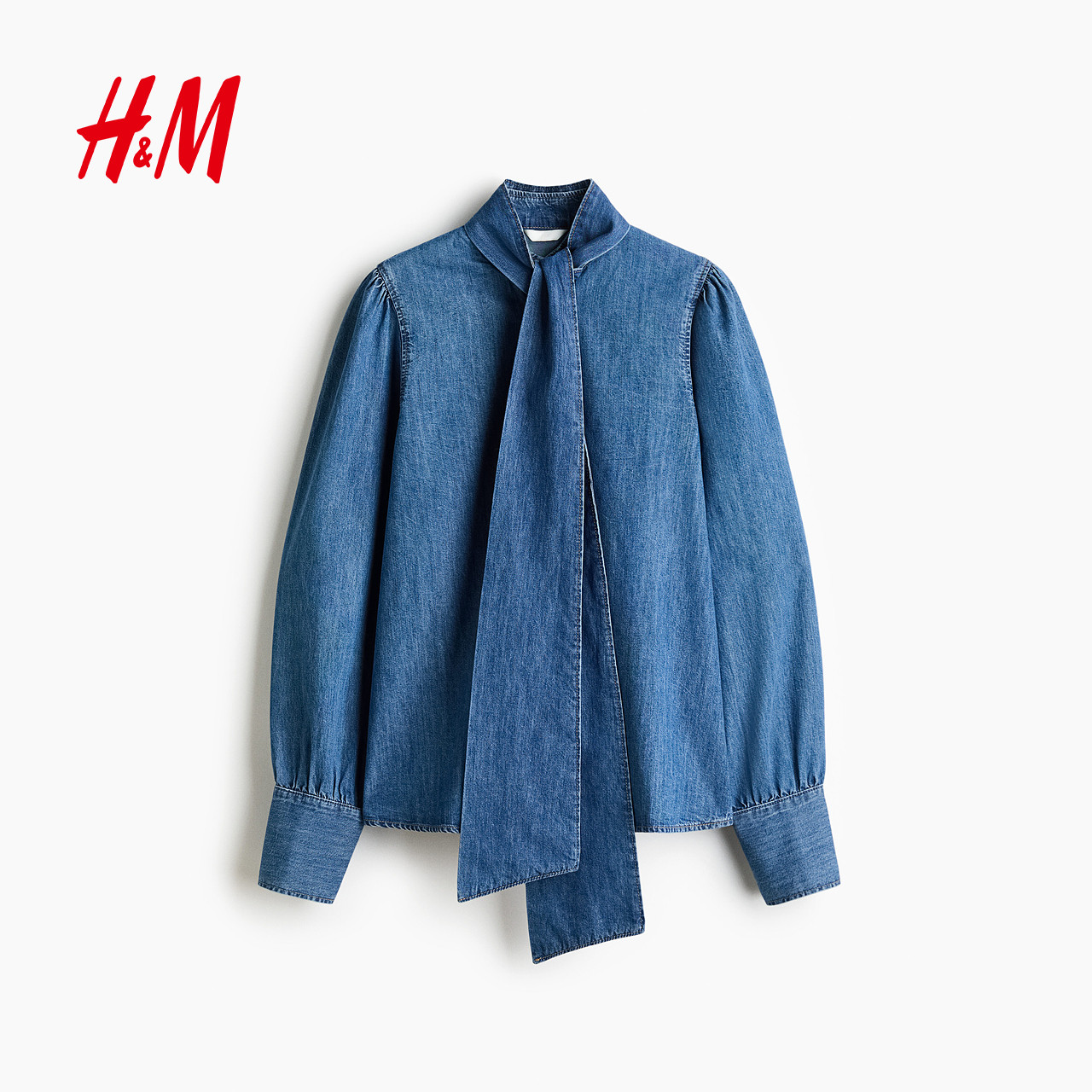 围巾设计牛仔挺括量感衬衫 HM女装 1321149 时尚 新款 衬衫 2026春季