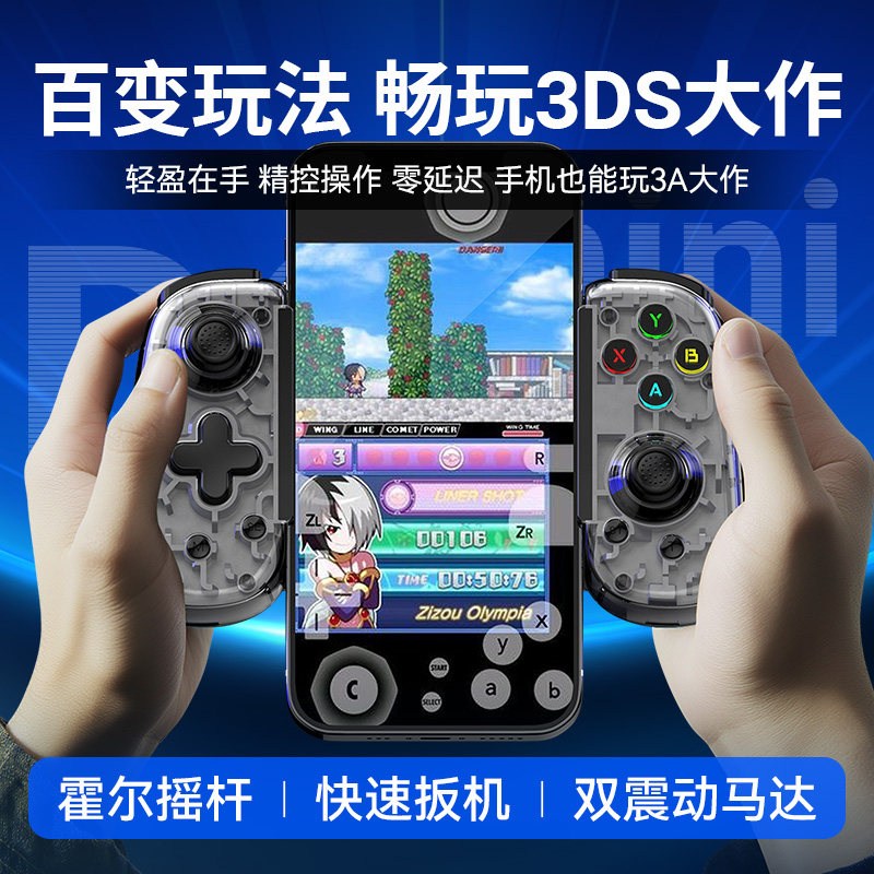 手机拉伸游戏手柄霍尔摇杆有线蓝牙双模PC安卓iOS串流手柄D6mini由