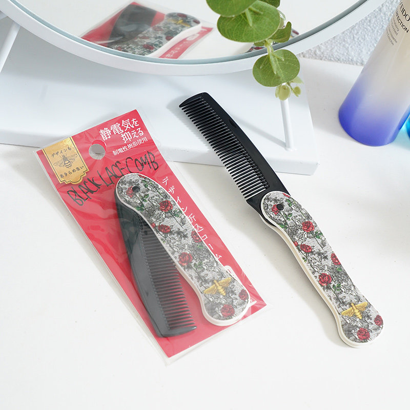 便携细齿编发分发线刘海随身梳 日本进口防静电折叠梳子保湿