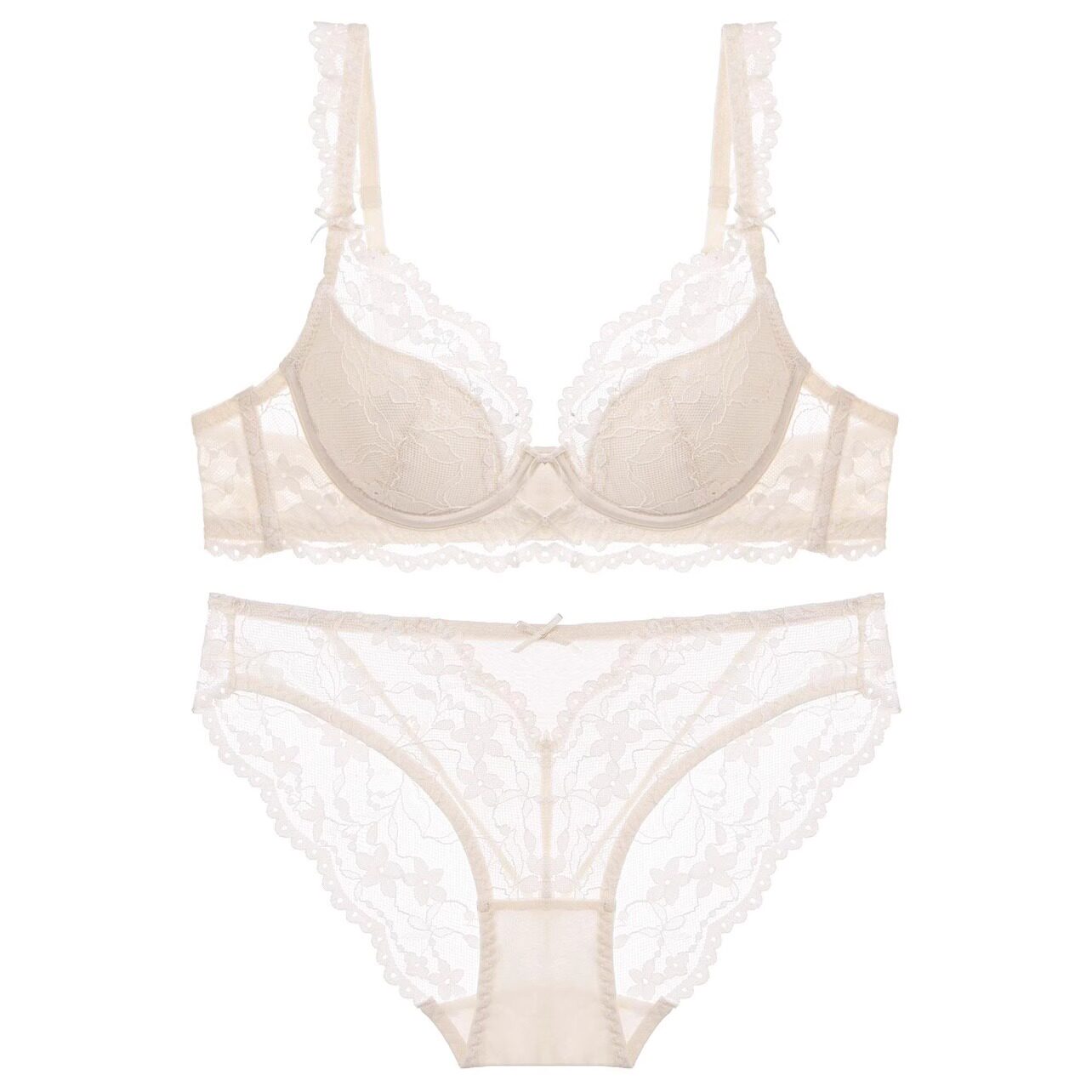 好奇蜜斯蕾丝法式 白三角杯小胸 内衣女美背性感夏薄纯欲文胸罩套装