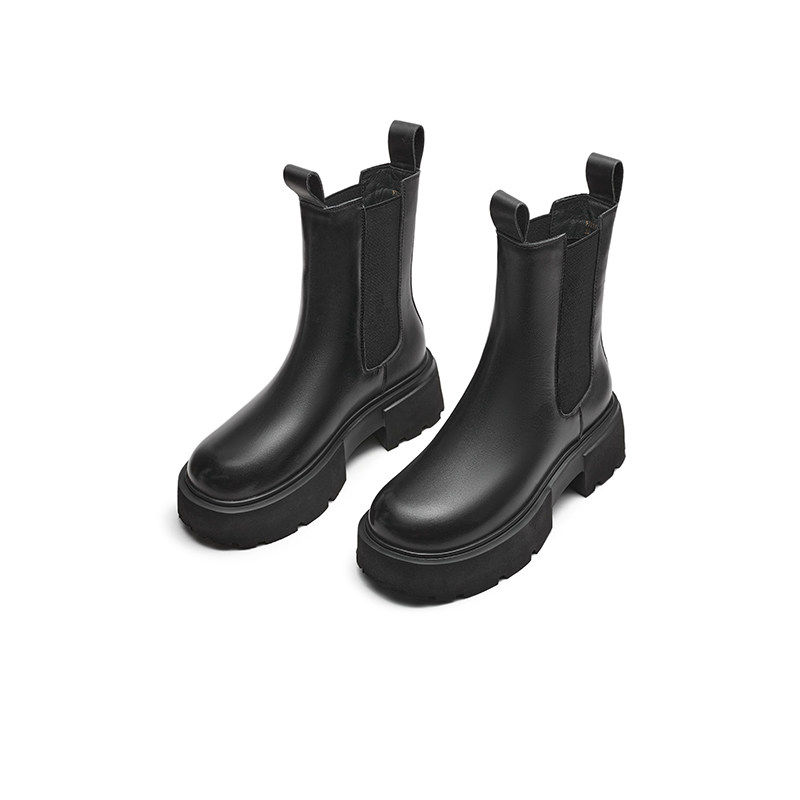 星期六秋冬厚底英伦马丁靴女靴圆头时尚 靴 中跟切尔西短靴复古时装