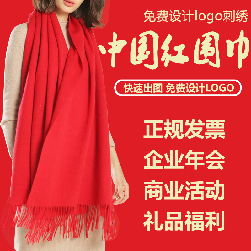 中国红围巾定制印logo刺绣男女披肩年会活动礼品本命年大红色围脖