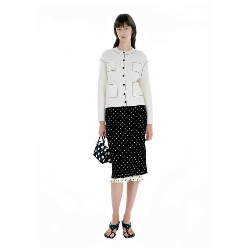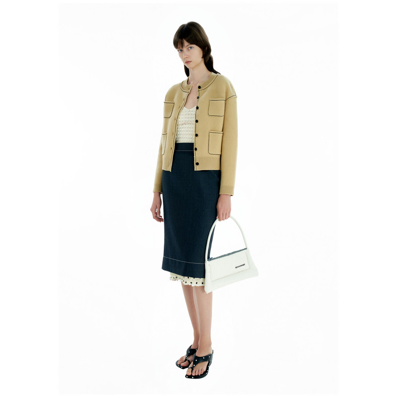 IIIVIVINIKO2025春新款 落肩撞色粗辑线针织开衫 女 美丽诺羊毛