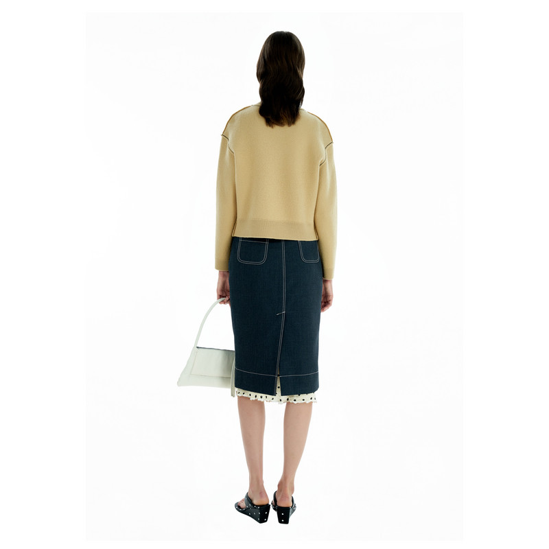 为您提供商品IIIVIVINIKO2025春新款 落肩撞色粗辑线针织开衫 女 美丽诺羊毛的详细介绍,