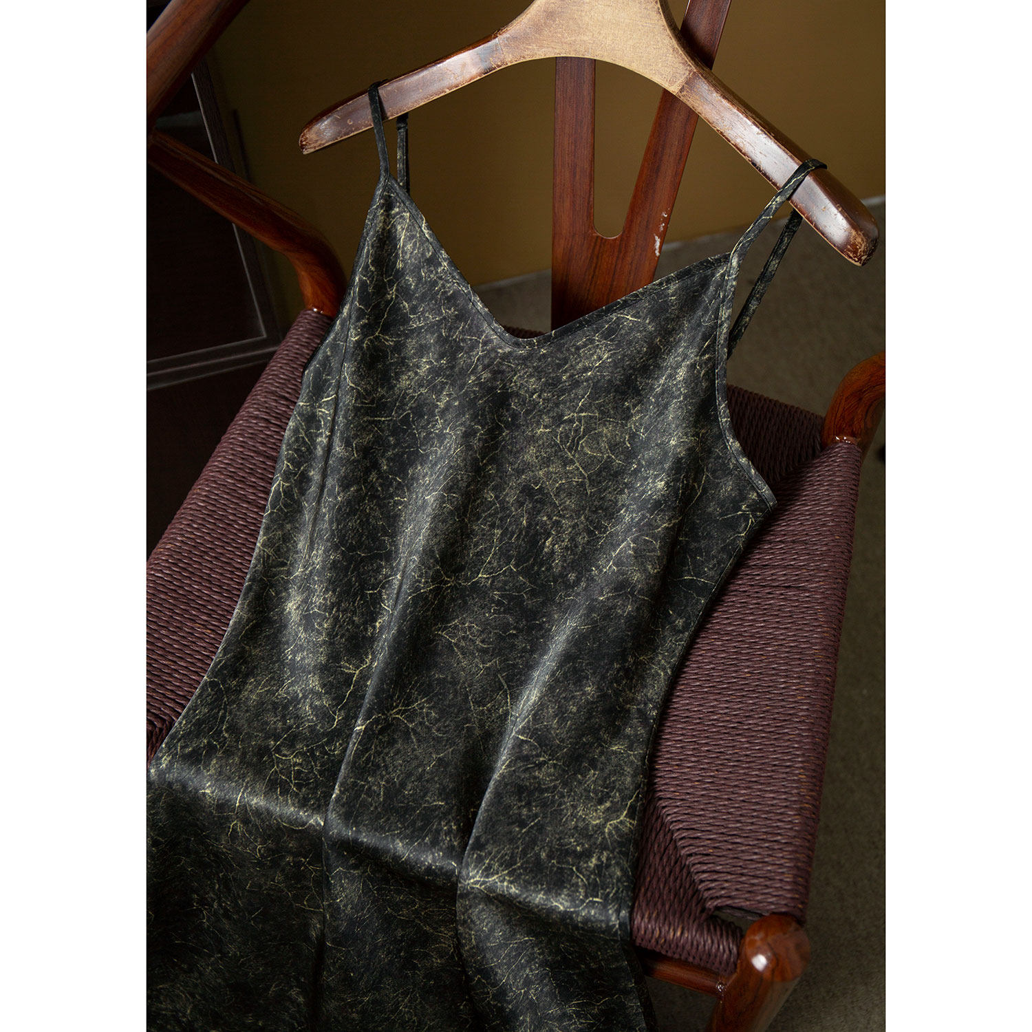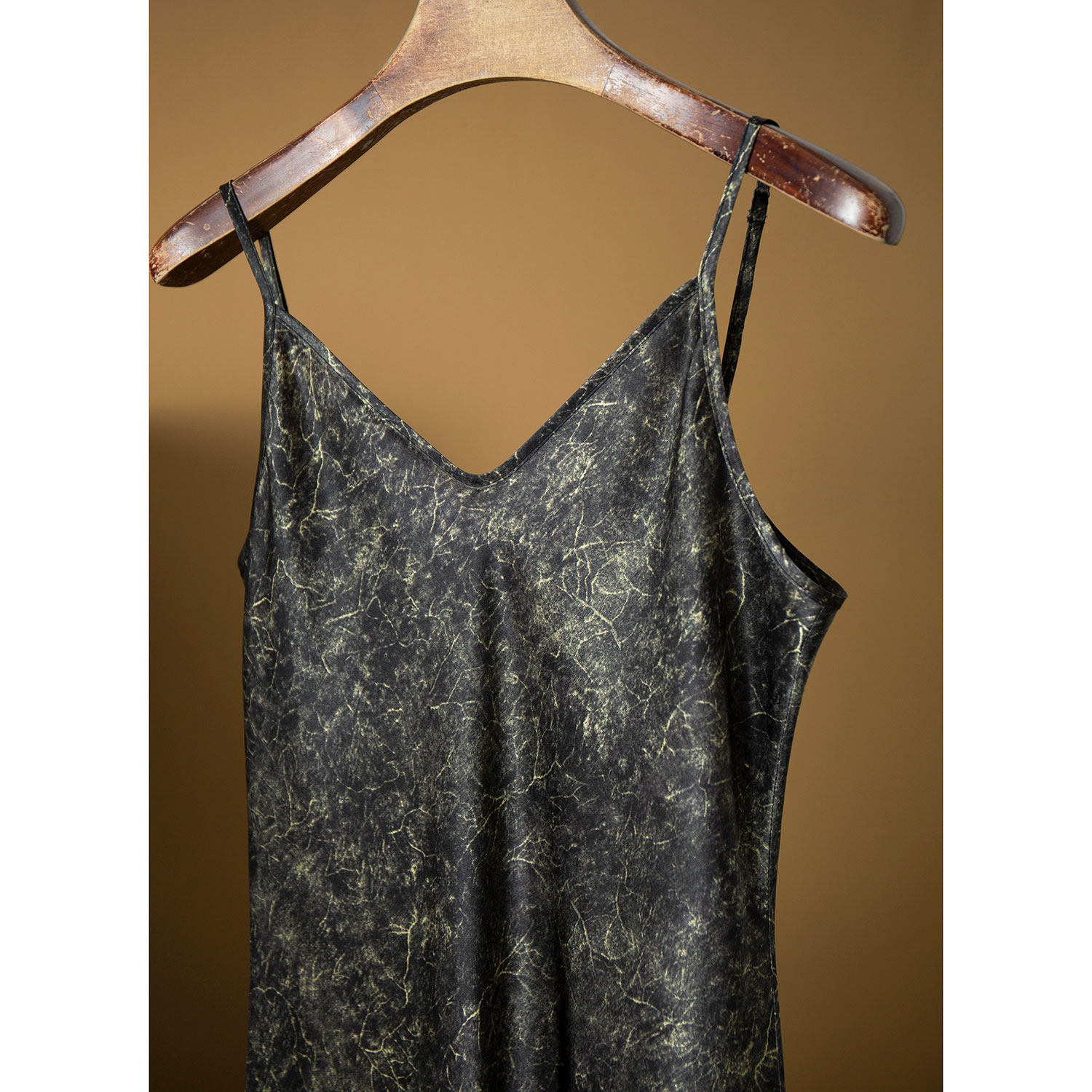 复古茶金色真丝礼服裙100%桑蚕丝斜裁显瘦可调节肩带吊带裙 丝艺