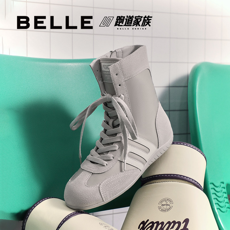 百丽休闲短靴拳击赛车中筒靴子女新款 子E3M1DCD5 高帮德训鞋