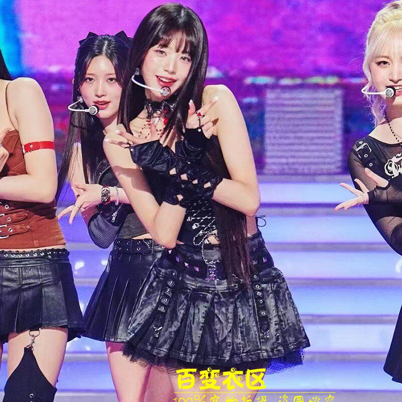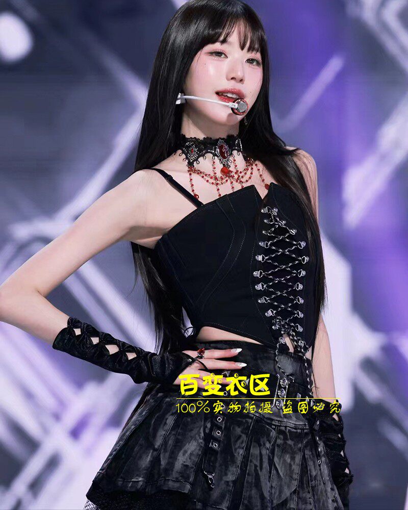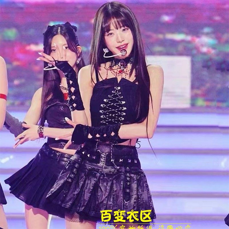 爵士舞服绑带裹胸幻彩皮裙套装 英同款 韩女团演出服ive打歌服张元由