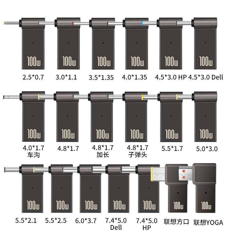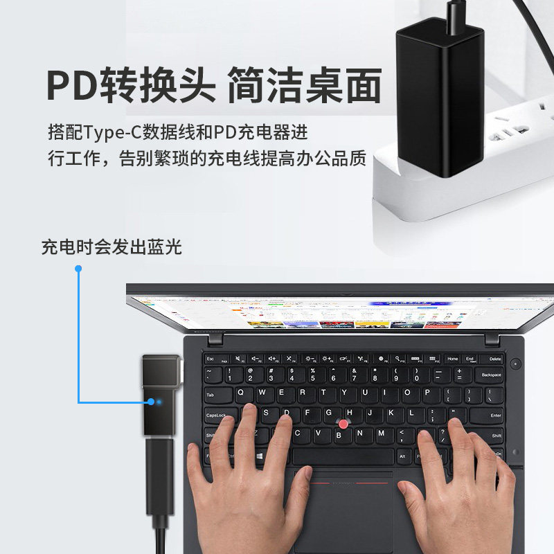 C通用华硕惠普戴尔三星宏基ThinkPad笔记本电脑圆口转接转换头诱骗器 景赛typec转联想方口快充头PD电源线USB由