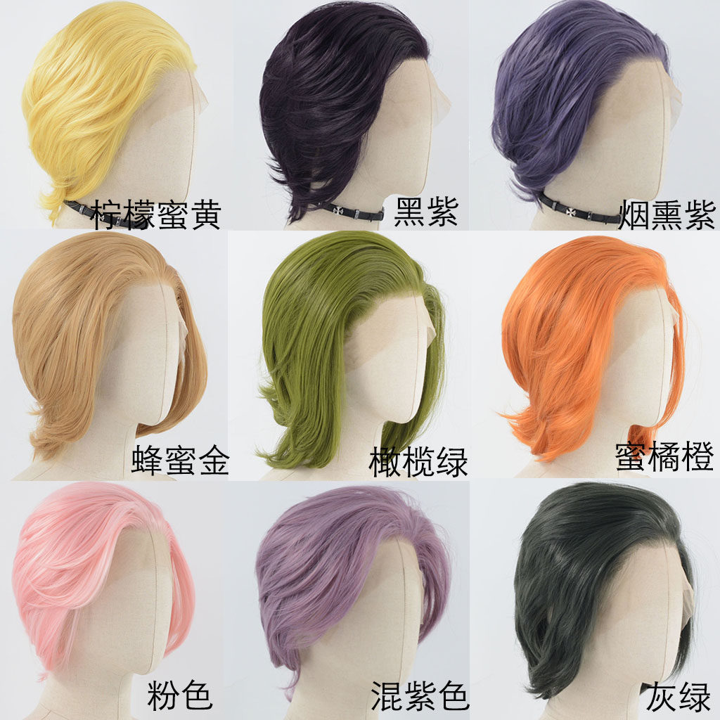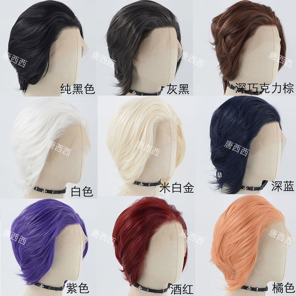 金色万用COS男短假发手勾前蕾丝高温丝假发毛胚黑色 短发合集